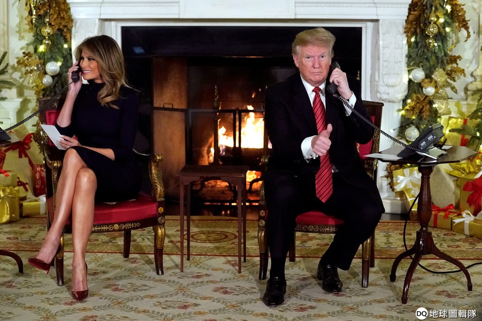24號這天,美國總統川普(Donald Trump)和第一夫人梅蘭妮亞(Melania Trump)加入北美防空司令部(NORAD)的行列,開始接來自世界各地的電話,告訴電話另一頭的孩子聖誕老人的行蹤。