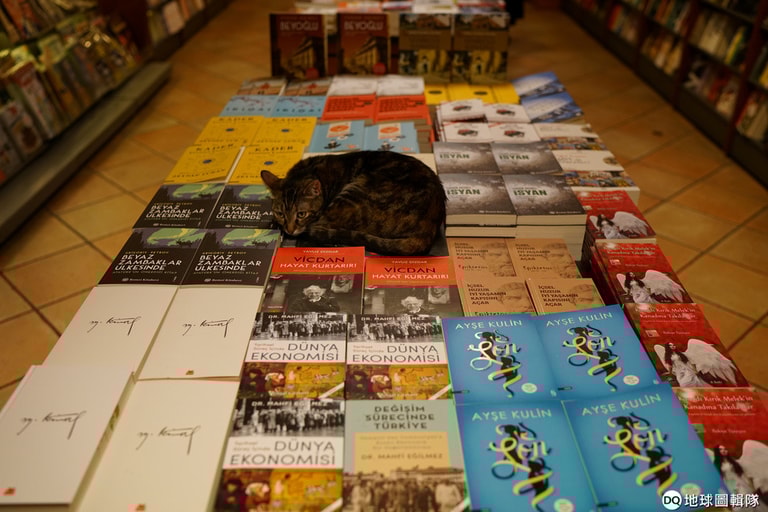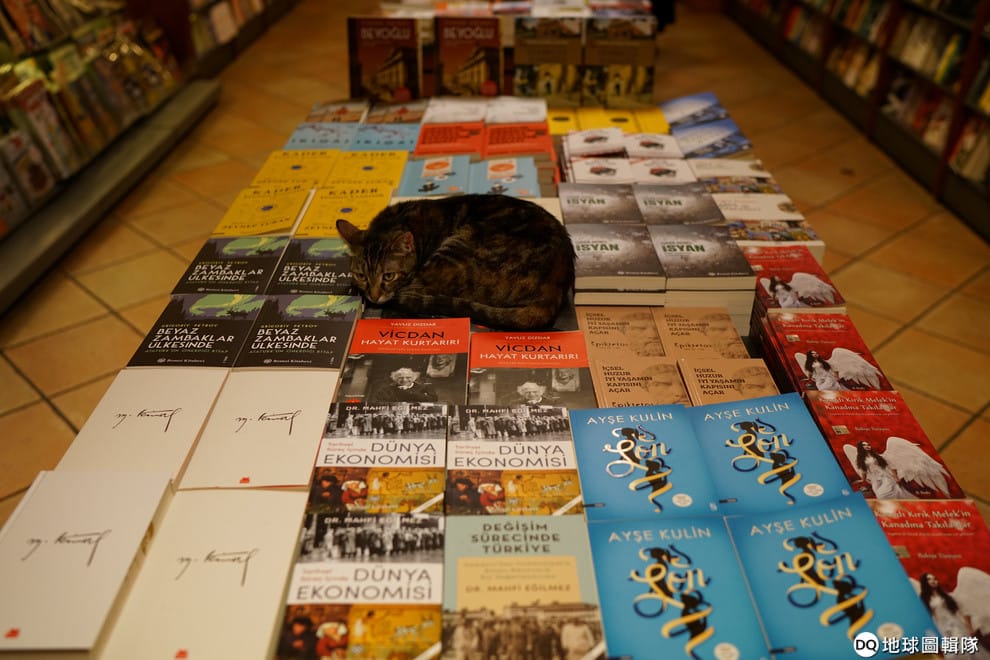 在有「貓之城」美譽的伊斯坦堡,一隻貓蜷縮在書店的書堆上,等著愛書人上門。