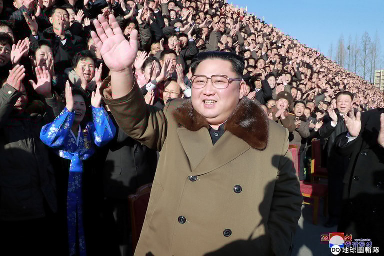 在這張由朝鮮中央通訊社(KCNA)釋出的照片中,北韓領導人金正恩在第四屆農業運動人士大會上和參加民眾打招呼。