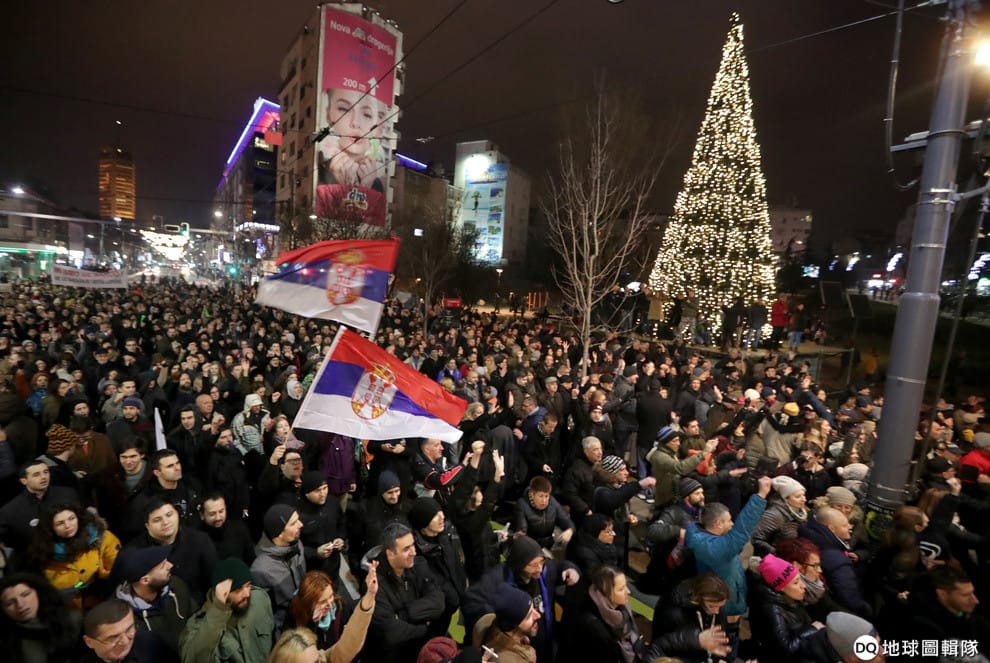 在賽爾維亞首都貝爾格勒(Belgrade),成千上萬名民眾走上街頭,反對現任總統武契奇(Aleksandar Vucic)箝制民主和媒體自由,要求他立刻下台並提前舉行總統大選。在遊行中,不乏民眾模仿法國示威民眾穿上黃背心,他們還手拿紅色哨子當作抗議的標誌。