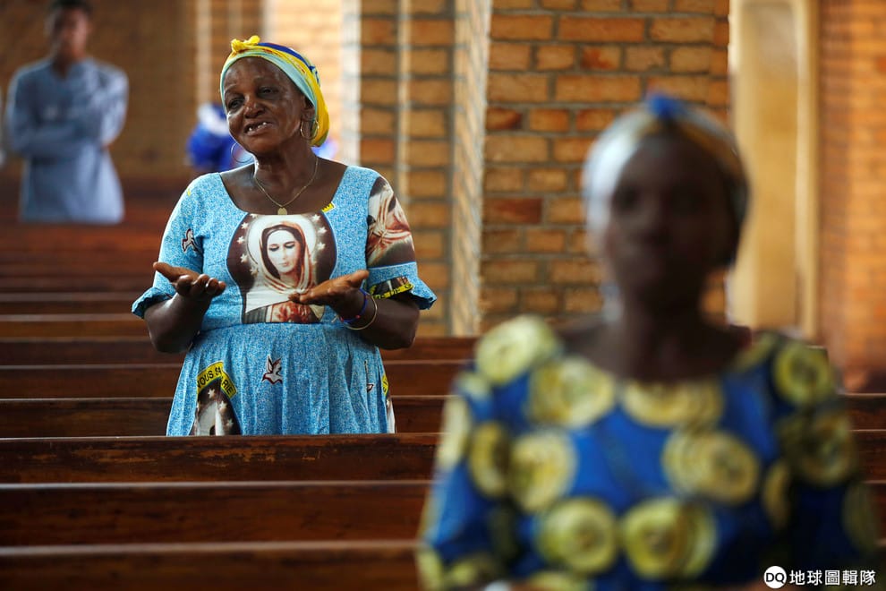 在首都金夏沙(Kinshasa)的聖母大教堂內,天主教徒們正在參加祈禱總統大選順利的和平彌撒。