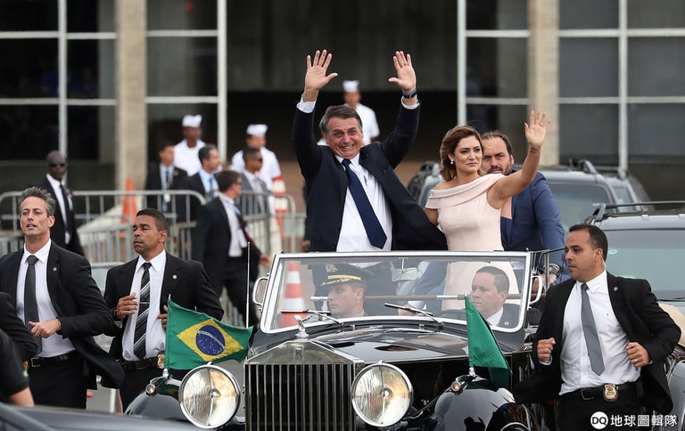 在首都巴西利亞,剛剛走馬上任的巴西總統波梭奈羅(Jair Bolsonaro)和妻子米雪爾(Michelle Bolsonaro)向支持民眾揮手致意。