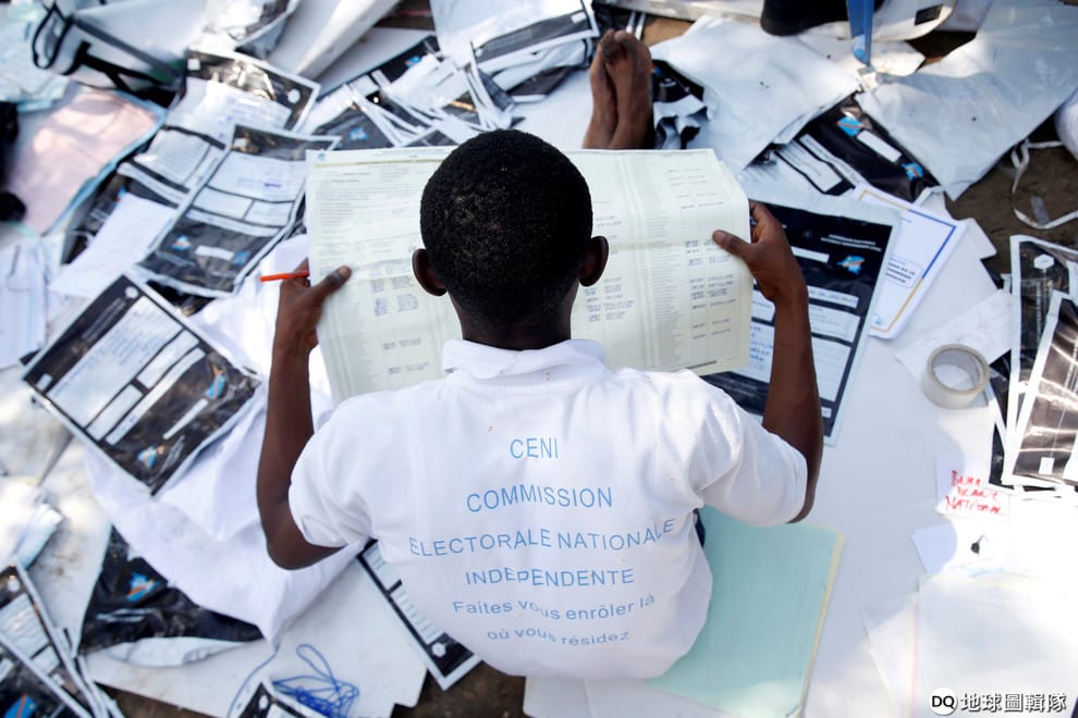 在首都金夏沙(Kinshasa),一名男子在全國獨立選舉委員會中審查投票資料,當地正在舉行總統大選,然而因為伊波拉疫情和治安不穩的影響,有部分地區會延到 2019年3月投票,為剛果的民主再添變數。