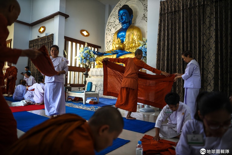 所以在泰國,虔誠的女教徒如果想要出家修行,她們唯一的選擇就是換上白袍成為「美姞」(Buddhist nun,編註)。但是美姞在寺廟裡往往負責家務,在規範上也不同於真正的僧侶或沙彌。