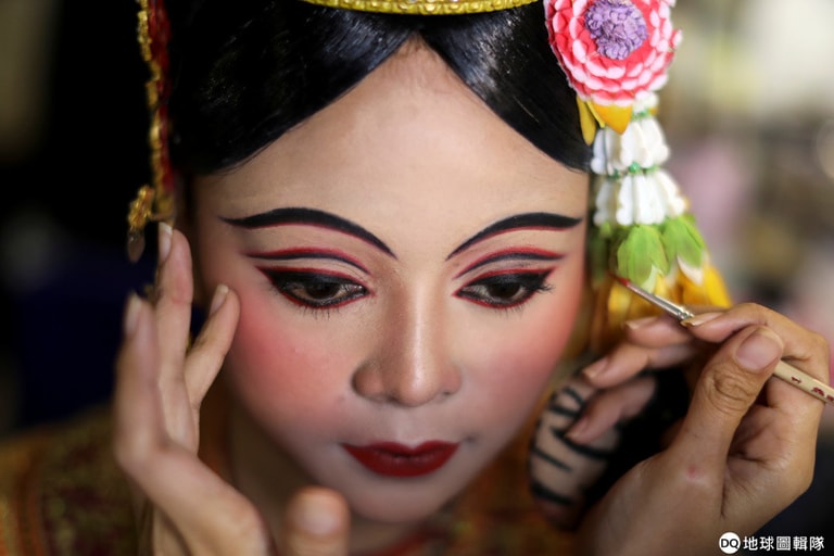 在曼谷泰國文化中心,一名準備演繹「孔劇」(Khon)的舞者正在做最後打扮。近日,孔劇被聯合國教科文組織(UNESCO)列為非物質文化遺產,受到了大眾的推崇。