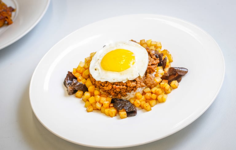 而說到中國南方菜系對土生葡菜的貢獻,就不得不提到醬油。在土生葡菜的著名料理「免治肉」(Mince)中,廚師會用絞肉搭配醬油、洋蔥等一起翻炒,最後再鋪上一顆金黃的荷包蛋,搭配白飯、炒飯或是炸薯塊一起享用。