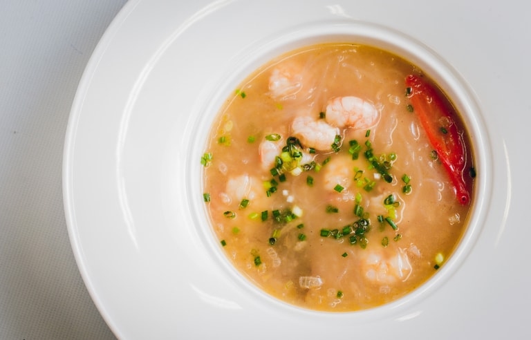 既然提到了馬來西亞蝦醬的使用,那麼從馬來西亞叻沙演變出來的「鮮蝦濃湯」(Lacassá Soup)自然是土生葡菜中不能錯過的好滋味。