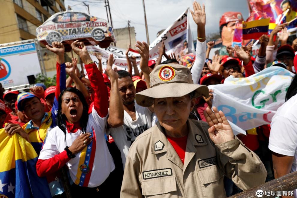 委內瑞拉總統馬杜洛(Nicolas Maduro)的支持者一同聚集在最高法院外,等著馬杜洛在這裡進行連任宣示。