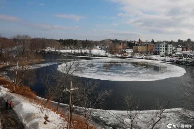 這幾天在東北部市鎮維斯布魯克(Westbrook)的普利桑普斯科特河(Presumpscot River)上,出現了一個直徑約 91公尺的巨大冰盤,它不僅會隨著天氣變大變小,還會跟著水流緩緩轉動——如此獨特的景致也很快吸引了大批民眾圍觀。
