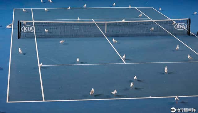 在澳洲網球公開賽上,無數隻鳥兒佔據了賽場,替緊張的賽事添了點逗趣的片刻。