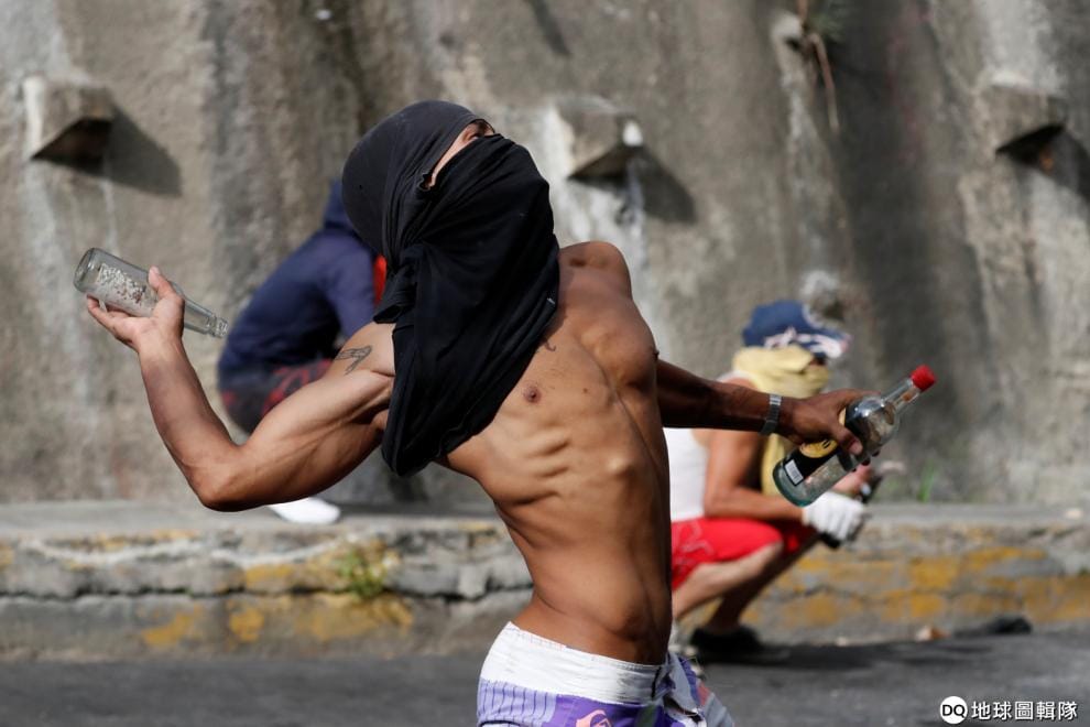 在首都卡拉卡斯(Caracas),抗議民眾拿起酒瓶朝委內瑞拉政府派出的鎮暴部隊丟,藉此表達對政府失能、經濟崩盤的不滿。