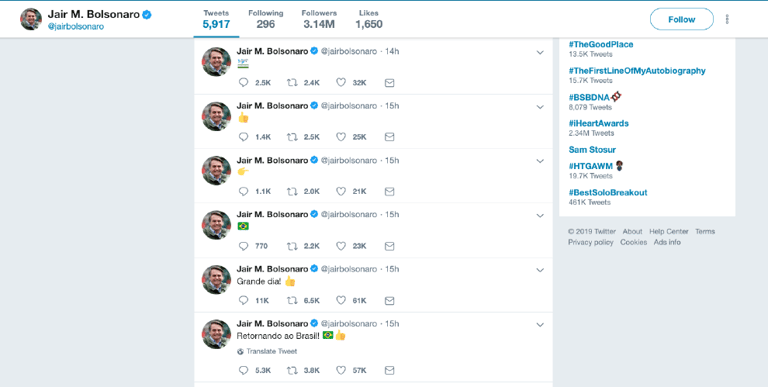 而對於威利斯對於總統的評論,巴西總統波梭奈羅並沒有回應,不過他在自己的twitter上發表了一系列「美好的一天」、大拇指比讚的表情符號,只是沒有多加描述這些貼文是在指涉什麼。