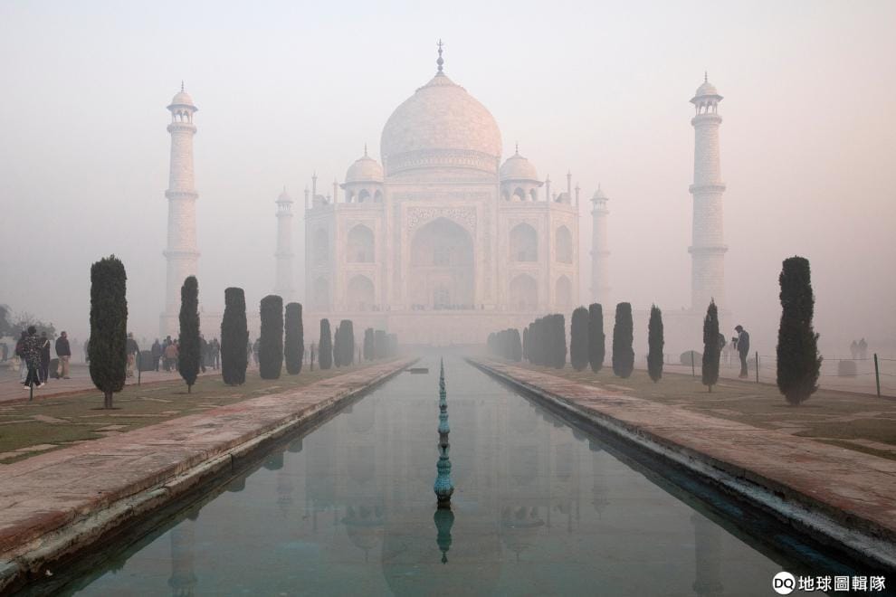 在印度北方邦亞穆納河畔的阿格拉市(Agra),被聯合國教科文組織列為世界遺產的泰姬瑪哈陵(Taj Mahal)處在清晨的空汙中,讓人看不真切。