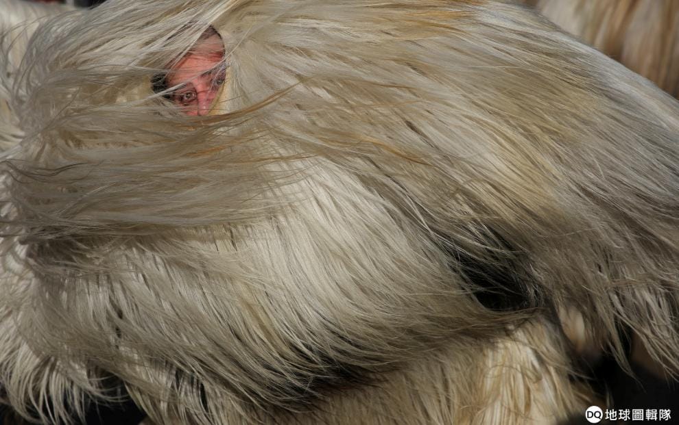 在保加利亞西部的佩爾尼克市(Pernik),一名男子穿著用動物毛皮做成的傳統服裝參加驅魔儀式,並在腰部掛上鈴鐺腰帶跳舞,用舞步還有鈴聲趕走邪靈,替村子祈求健康、幸福和豐收。