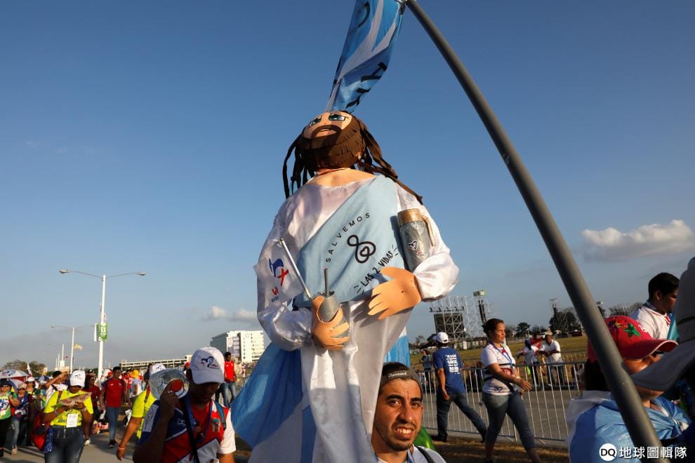 27號這天,一名男子扛子耶穌的玩偶,往巴拿馬市的聖保祿二世地鐵公園(Saint Paul II Metro Park)前進,羅馬天主教宗方濟各(Pope Francis)即將在當地參加「世界青年日」活動。