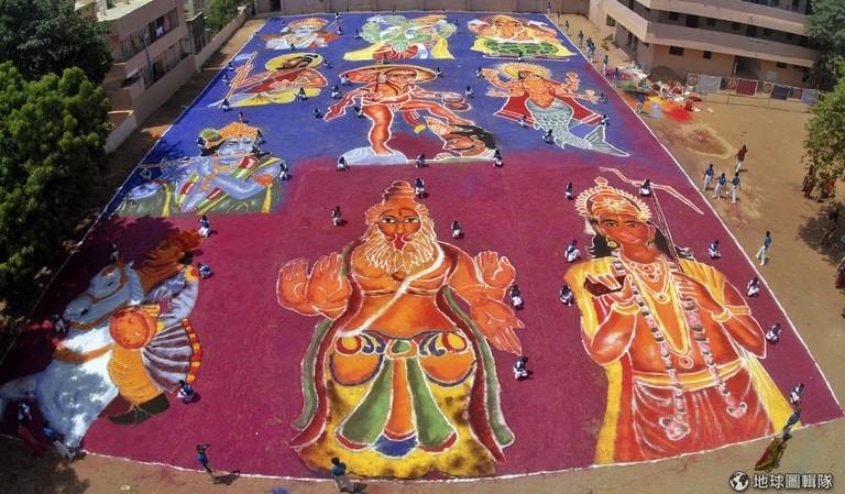 除此之外,最特別的莫過於「搶金球」(Dahi Handi)競賽,這項競賽跟台灣的搶孤有點相似,主要是一顆亮金金的球會高掛天空,這時人們就會盡全力疊起人肉金字塔來打這顆金球,只要打中球,裡面的鈔票就會掉出來,最先搶到的隊伍就能平分金球內的錢!