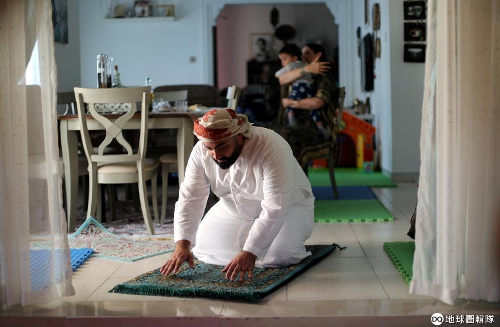 在杜拜的一所住宅內,篤信伊斯蘭教的穆斯林薩伊德(Ali al Sayed)正在禮拜,他的身後是篤信天主教的妻子梨西昂妮(Mina Liccione)。