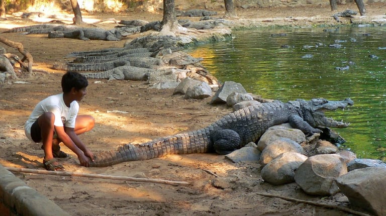 在印度西部古吉拉特邦(state of Gujarat),當地不少村落的居民都和沼澤鱷(Crocodylus palustris)朝夕相處。