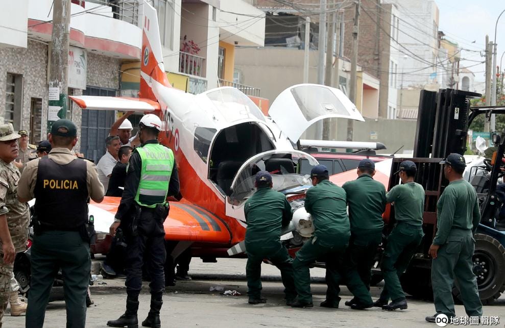在首都利馬(Lima),人們正忙著處理墜毀在街頭的空機,所幸僅有兩人受傷。
