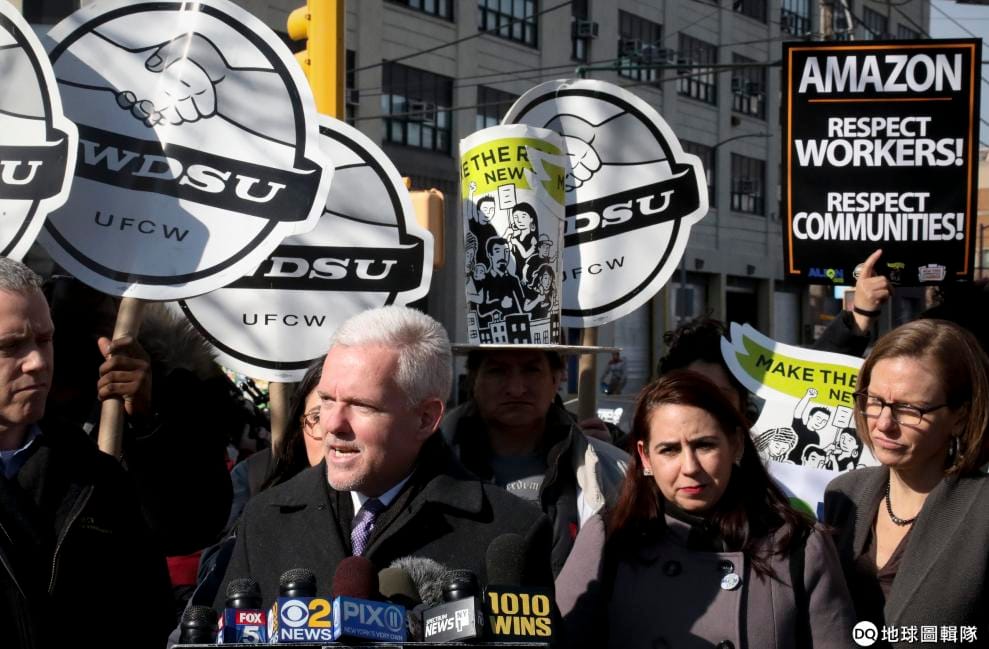 美聯社 / 達志影像大部分的亞馬遜員工,都非工會成員,換句話說,當他們的勞工環境惡劣時,也無法受到法律保障與工會保護,此外,亞馬遜又常因為工時過長、勞工條件等被批評。反之,紐約市則是以其工會為勞工爭取權益而聞名。