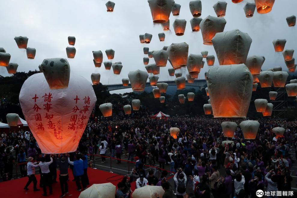在新北市的平溪,人們為了慶祝元宵節紛紛開始放天燈,希望許下的願望隨著天燈的升空而成真。