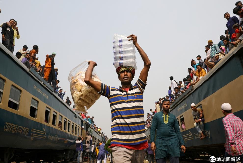 隨著「世界穆斯林大會」(Bishwa Ijtema,又稱朝聖節)的到來,上百萬名穆斯林都來到距離首都達卡(Dhaka) 30公里的東吉鎮(Tongi)參加,小販也看準商機對著火車上的乘客銷售水和乾糧。