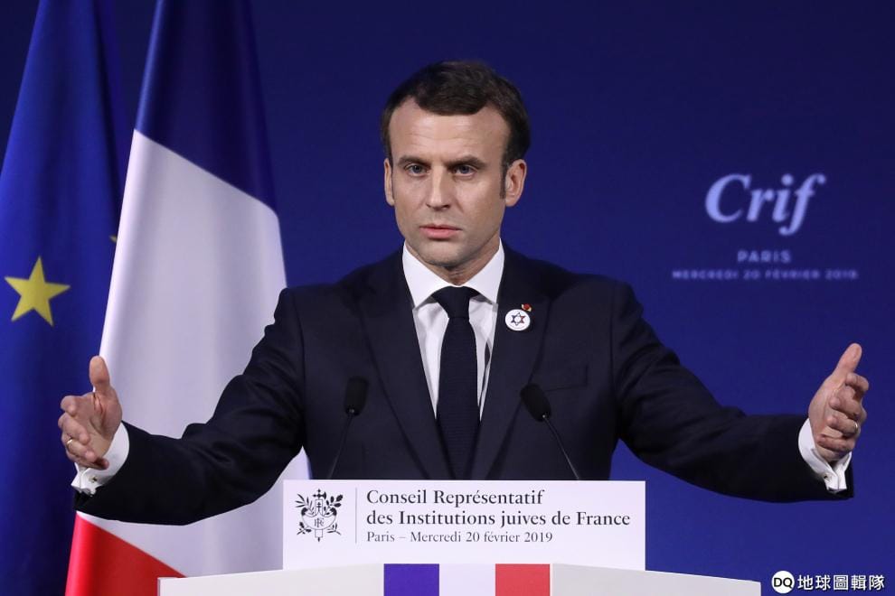 在第 34屆法國猶太機構理事會(CRIF)舉辦的年度晚宴上,法國總統馬克宏(Emmanuel Macron)正在發表演說。隨著法國社會反猶衝突越來越多,當局也加派人員警戒,並且呼籲族群相互理解跟包容。