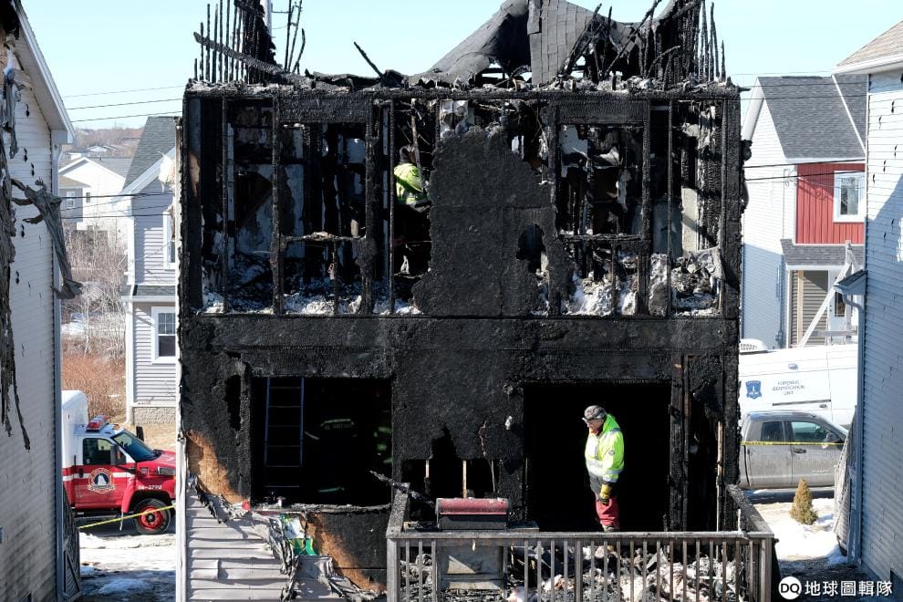 在新斯科細亞省(Nova Scotia)省會哈里法克斯(Halifax)的一處社區,消防人員正在探勘被大火燒得焦黑的房屋,這場大火帶走了屋內 7名孩童的生命。