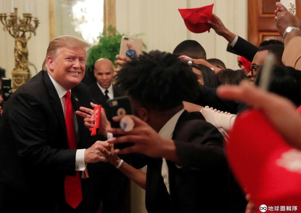 在位於華盛頓特區的白宮,美國總統川普(Donald Trump)和前來參加美國非裔美人歷史月活動的民眾打招呼。