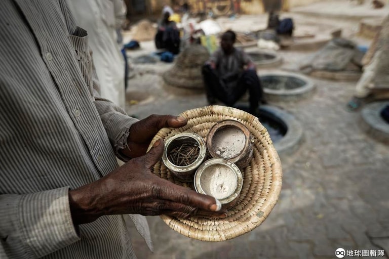 今年 50多歲的染匠伊斯馬魯(Lawan Ismailu)強調,老染坑用的全是天然不含化學合成物質的染料,只見他把手指放進染坑中沾了一下然後拿來舔,他還補充到,靛藍植物也可以拿來製藥。