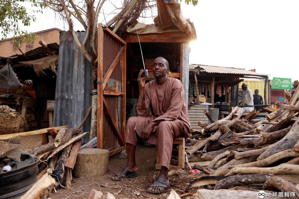 一名男子專心聽著收音機裡的資訊,想趕快知道奈及利亞的總統大選結果。