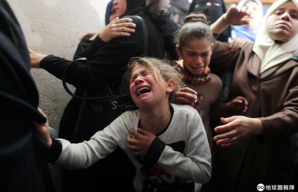 在15歲的巴勒斯坦青年狄雅(Yousif al-Dayyah)的喪禮上,他的親屬忍不住放聲痛哭。狄雅是在以色列—加薩走廊邊境的衝突中喪命。