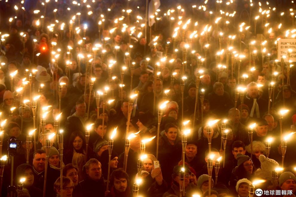 本月 24號,人們在極右翼愛沙尼亞保守人民黨(Estonian Conservative People's Party, EKRE)的號召下,一同舉起火炬走上街頭遊行。