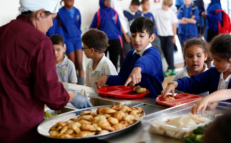 社區小學考量到當地的居民組成,像是我們住的Tower Hamlets區,和倫敦其它穆斯林人口較多的區一樣,只要是公立學校,營養午餐食材一律是Halal的,絕對不會有豬肉。其他則是主菜葷素各一,關照因為宗教或其他原因吃素的學生。