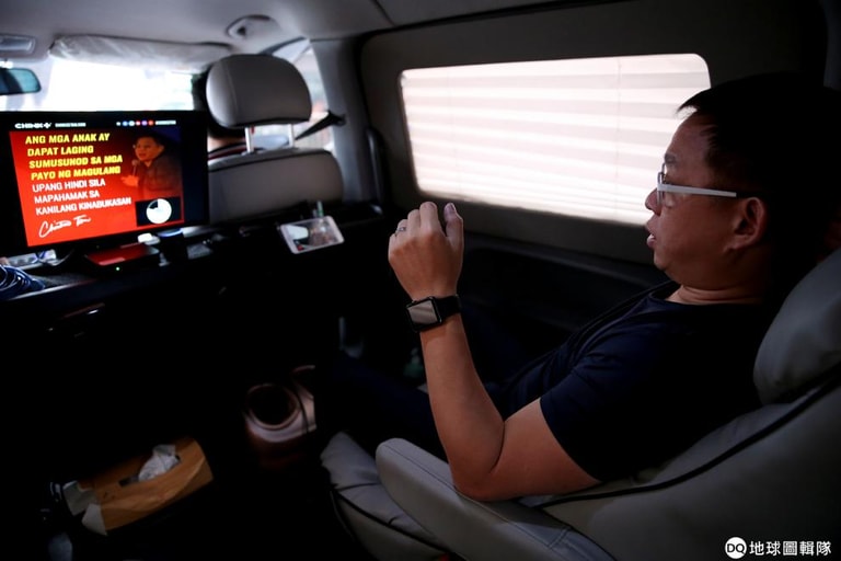 今年 53歲專門教人致富的理財教練陳費迪南德(Ferdinand Tan)表示,他為了對抗交通大打結,不僅開放員工在家上班,他還將自己的廂型車改造成行動辦公室,裡頭充電設備、電腦一應俱全,甚至還裝了一台腳部按摩機。