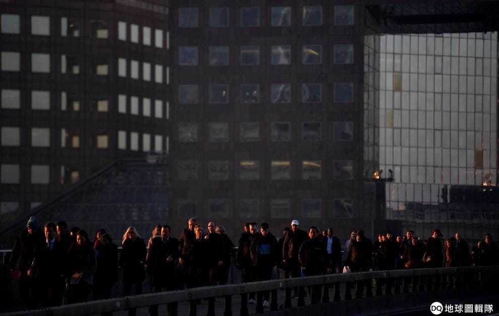在一大清早,上班族們紛紛走過倫敦大橋,準備上工去了。