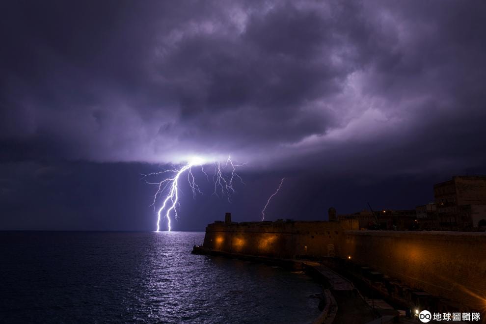 在一個風雨交加的天氣,一道閃電打在位於首都法勒他(Valetta)的聖埃爾莫港口(Fort St Elmo)。