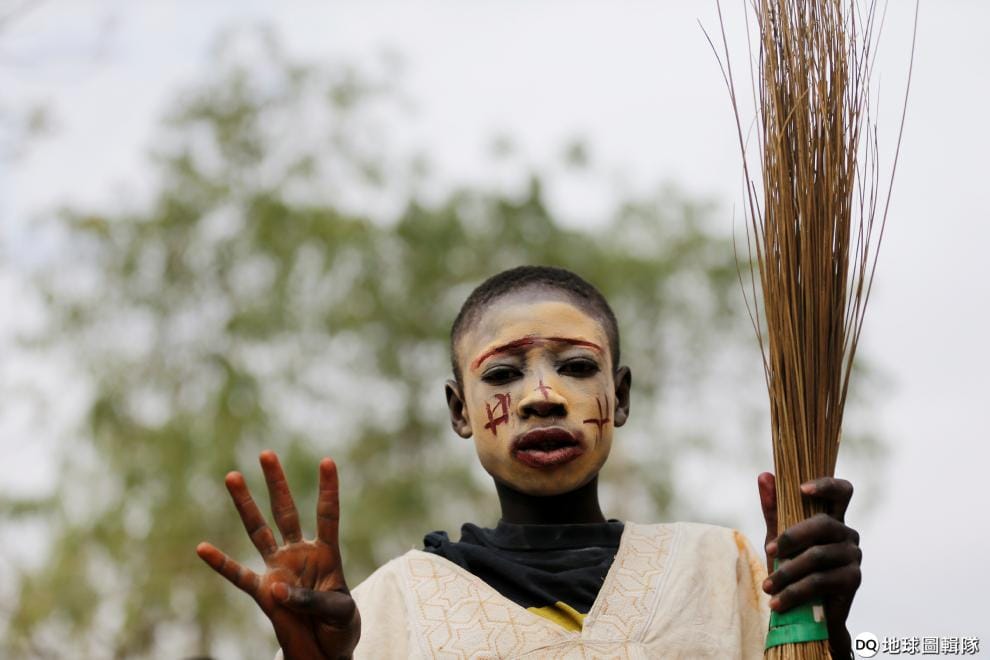面對奈及利亞總統布哈里(Muhammadu Buhari)確定連任,一名男孩正在和其他布哈里的支持者一起慶祝這一刻。