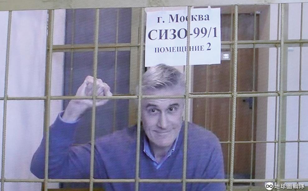 透過翻攝的螢幕畫面,私募基金Baring Vostok創辦人卡維(Michael Calvey)正在莫斯科的法庭參與聽證會。