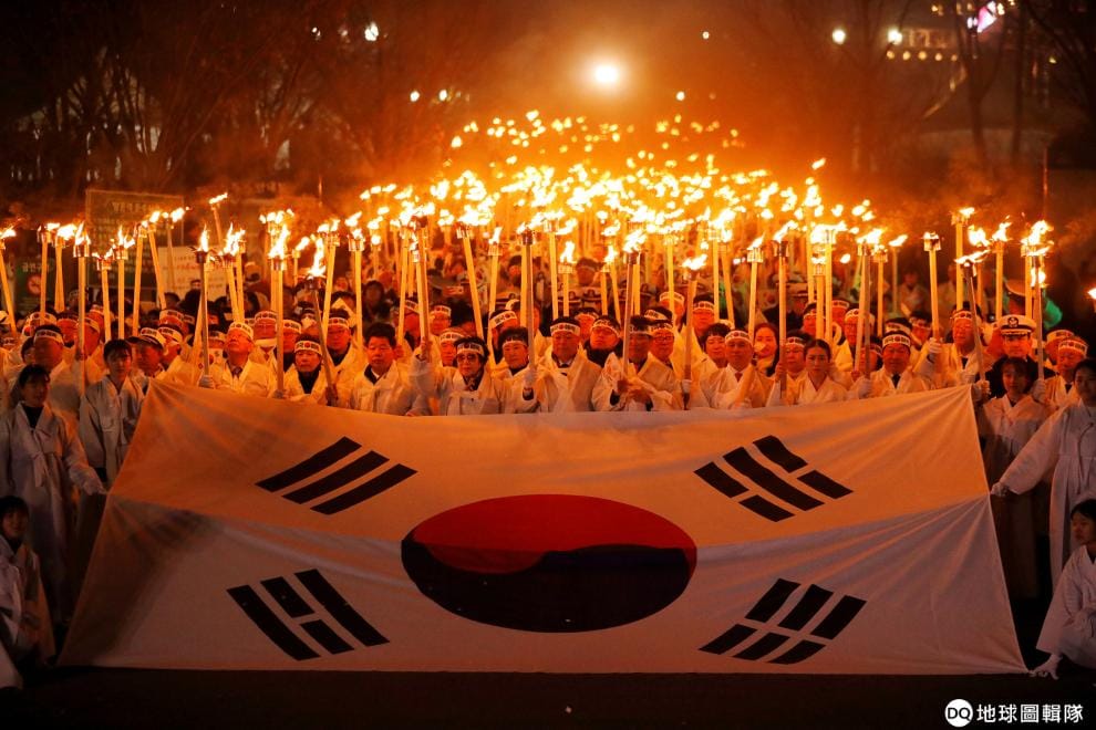 人們舉起火炬走上天安市街頭,重現了 1919年3月1日這天,人們走上街頭反對日本殖民政府、爭取獨立的「三一運動」,這場示威也在韓國獨立扮演了至關重要的角色。