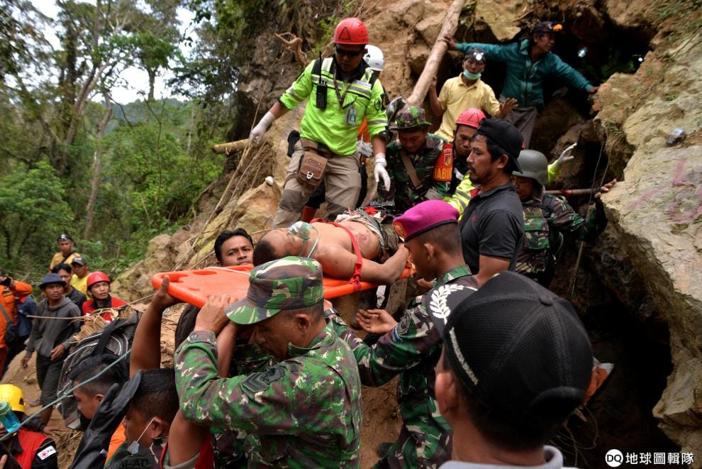 印度尼西亞北蘇拉威西省的博朗蒙貢多縣傳出非法金礦崩塌事故,造成至少 8人死亡。畫面中救難人員正忙著把礦工救出。