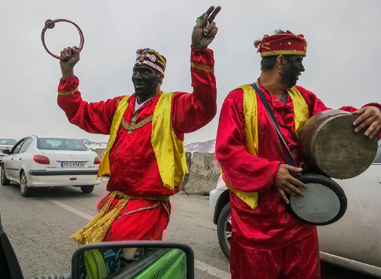 在街上,有人會裝扮成黑臉的小丑費魯茲(Haji Firuz)手拿響鈴,身邊跟著諾魯茲爺爺(Amu Nowruz)告訴大家諾魯茲來了。