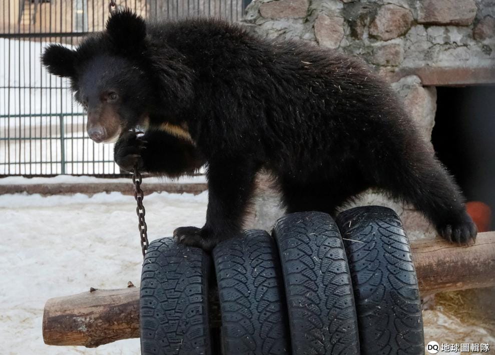 在羅伊孚露奇動物園(Royev Ruchey zoo),一歲大的喜瑪拉雅棕熊「亞辛」(Yashin)在結束冬眠後,獨自在廣場裡玩耍,牠的媽媽仍在冬眠中。