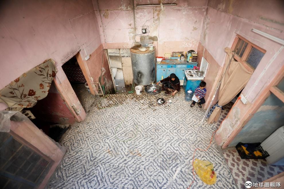今年 28歲的哈利德(Marwa Khalid)正忙著洗衣服,她和兒子現在住在摩蘇爾城(Mosul)舊城區的臨時住所。