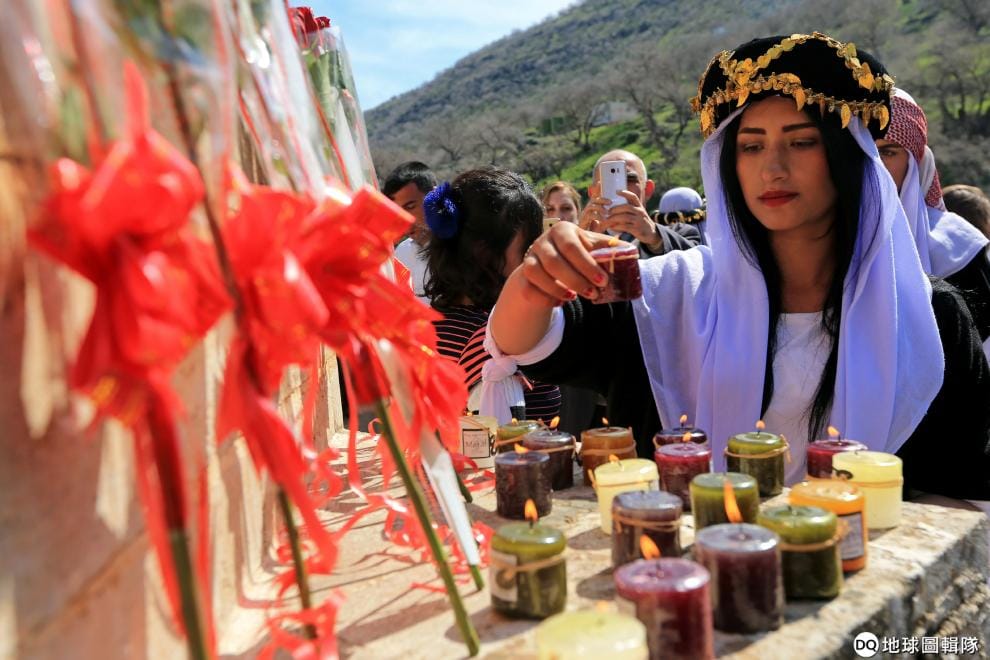 一名亞茲迪(Yazidi)女性點起燭火,悼念在與伊斯蘭國(IS)作戰中死亡的女性戰友。