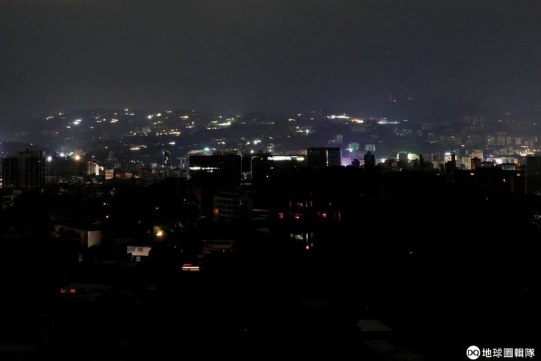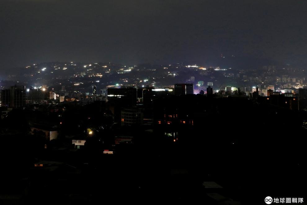 首都卡拉卡斯(Caracas)停電的狀況,讓大半區域都是黑漆漆的模樣。