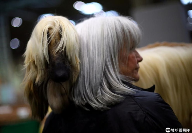 面對伯明罕(Birmingham)正在如火如荼地舉辦克魯弗兹犬展(Crufts Dog Show),在這裡,狗主人們無不費盡心思,要讓他們的愛犬奪下「最佳狗狗」殊榮。畫面中是一名女子抱著她的阿富汗獵狗。