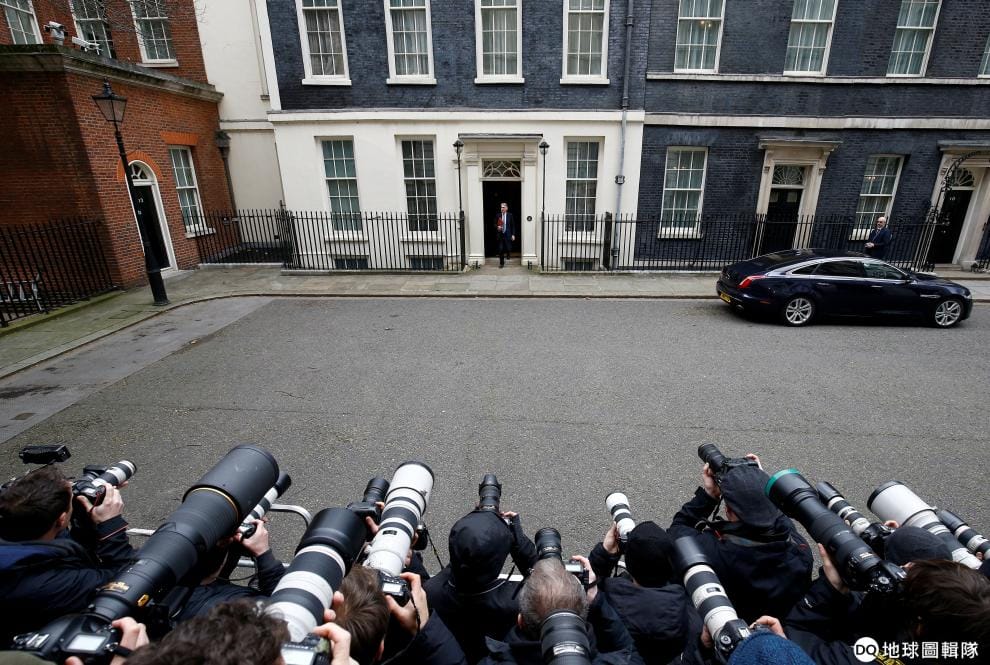 在唐寧街(Downing Street)上,攝影師們紛紛把相機擺好位置,等著英國財務部長韓蒙德(Philip Hammond)出來就預算計畫發表聲明。
