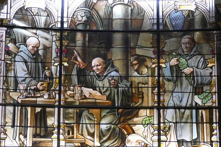 許多酒的起源都極為相似,除了跟早期的神靈信仰有關係之外,往往還和消毒解熱、強身健體有著很深的淵源。而我時常用來補元氣的D.O.M更是同時具備這兩個特質,如果不考慮 1510年由法國修道士發明的傳說,至少自 1863年法國商人亞歷山大的研發與推廣開始,法文意思為「獻給仁慈上帝」的D.O.M,即被賦予了「修道院養生祕方」的形象;至於那個被當作商業機密的配方,只知道粗略的二十餘種包括沒藥、當歸、牛膝草、杜松、丁香等香料與藥草,用來治療感冒是沒什麼效果,但增強免疫力倒是頗有幫助。