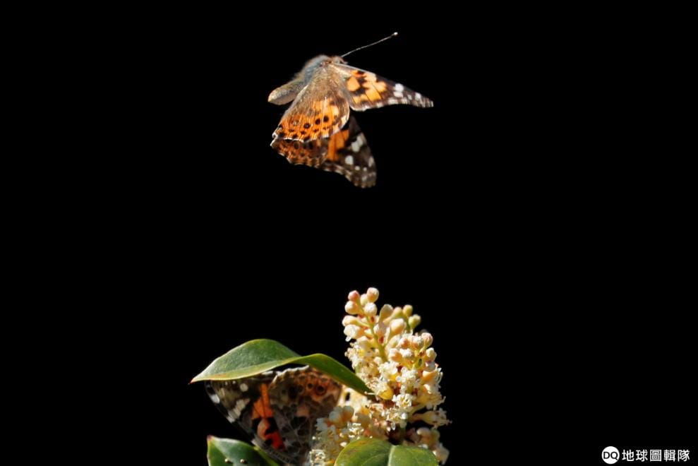 成群的小紅蛺蝶飛過一叢又一叢的花兒。因應季節變化,牠們正準備從墨西哥遷徙到美國加州城市恩西尼塔斯(Encinitas)。